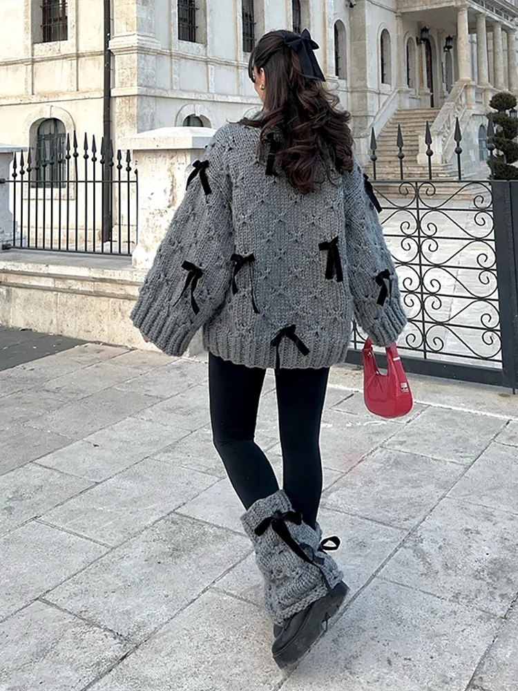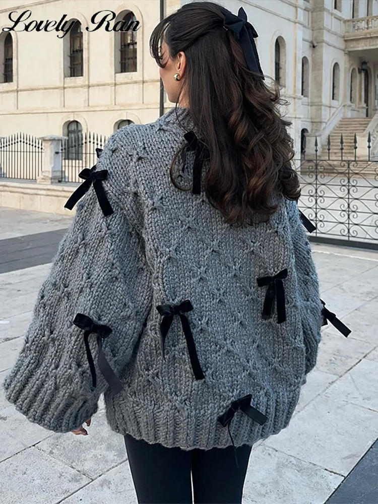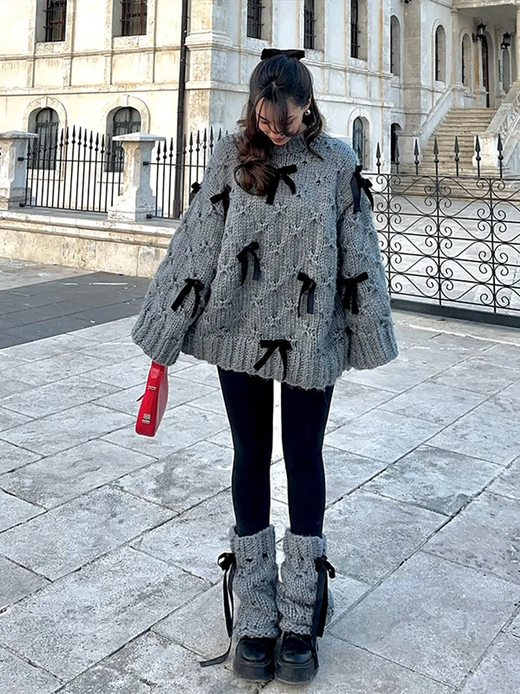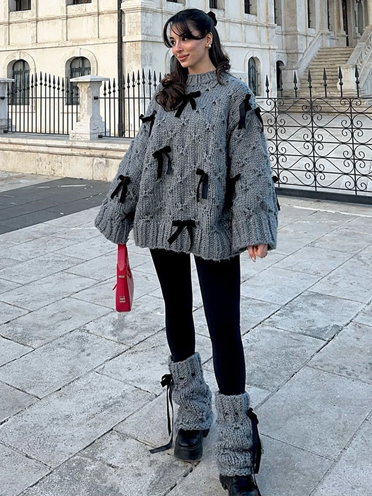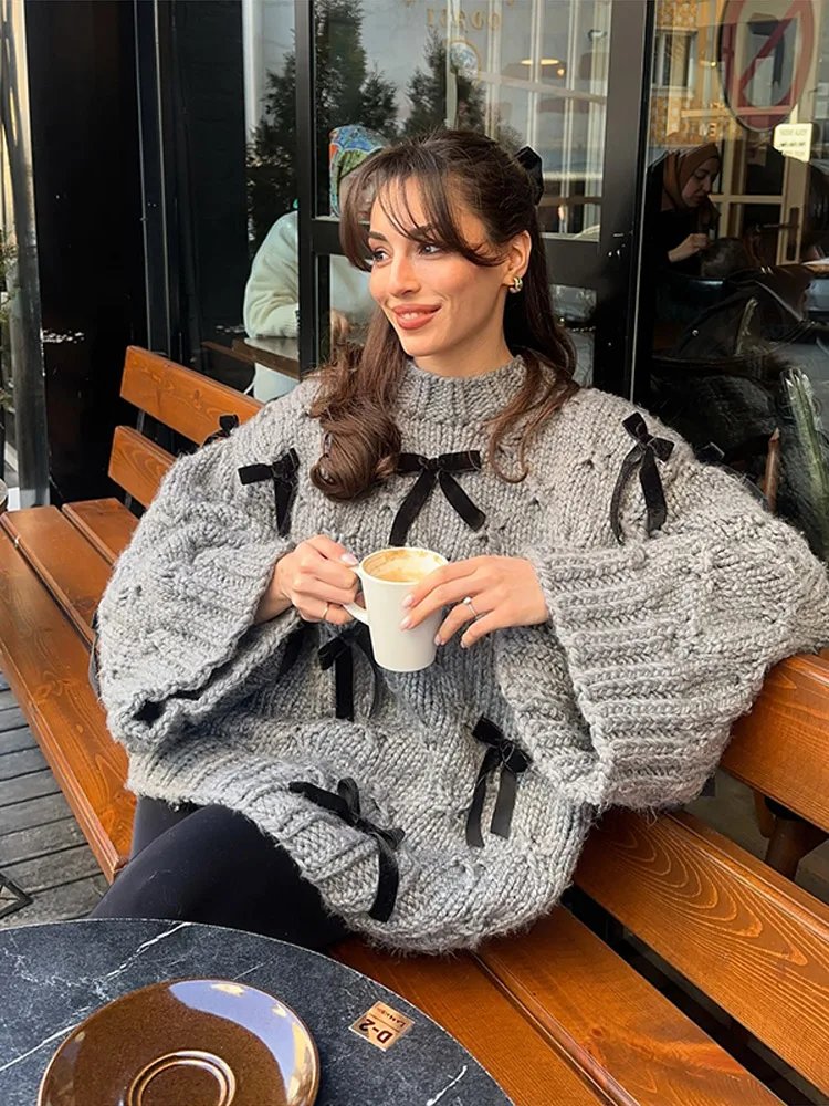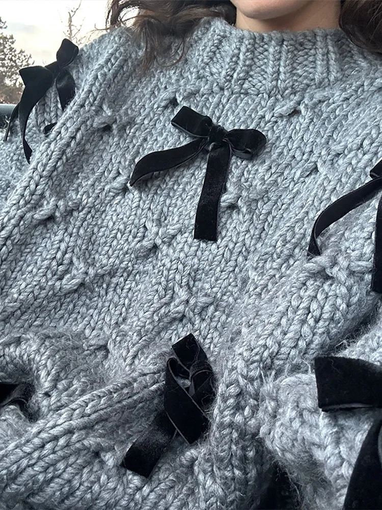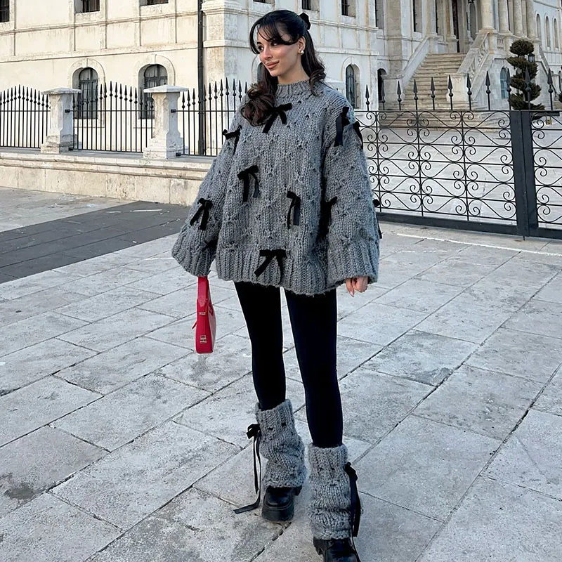 4 reviews for 2026 Spring Autumn 3D Bow Knit Women Sweater Elegant Long Sleeve Pleated O-neck Female Knitwear Casual Solid Lady Pullover