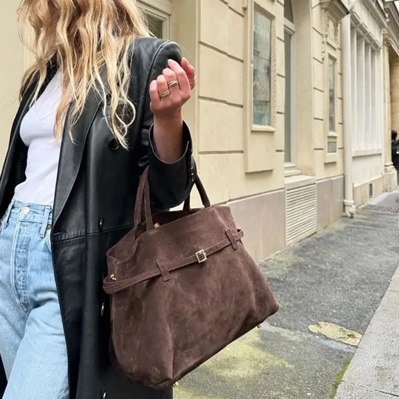 Autumn and winter new frosted suede belt buckle hand-held tote bag lazy style commuting women’s bag