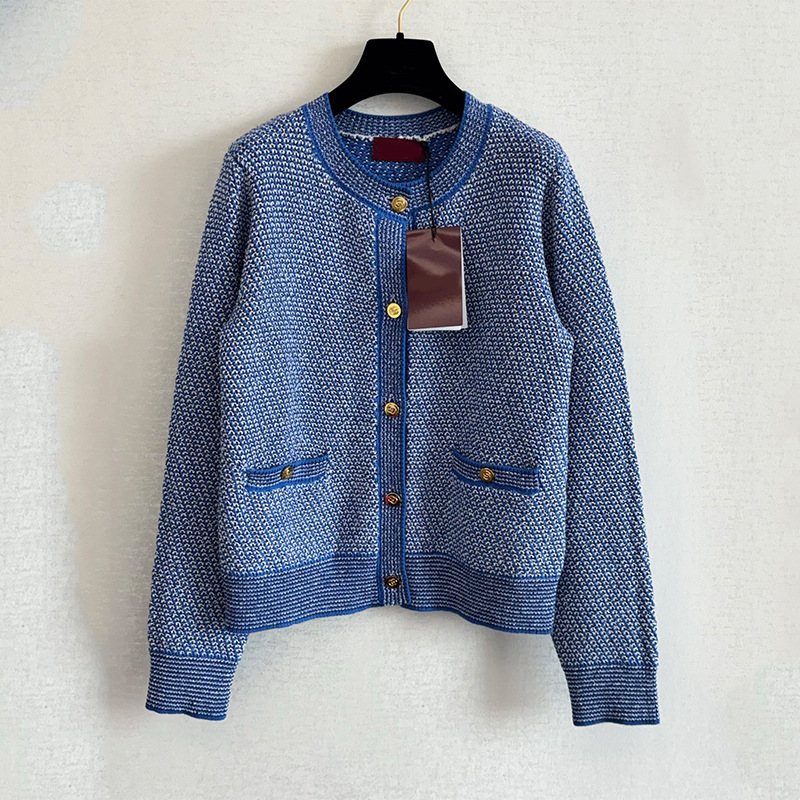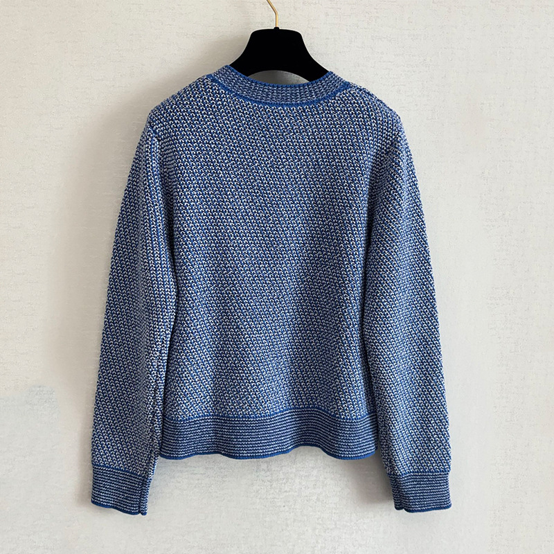 Spring Autumn Soft Classic tweed style Crew Neck Long Sleeve Knit Cardigan Petite Short Outerwear for Women