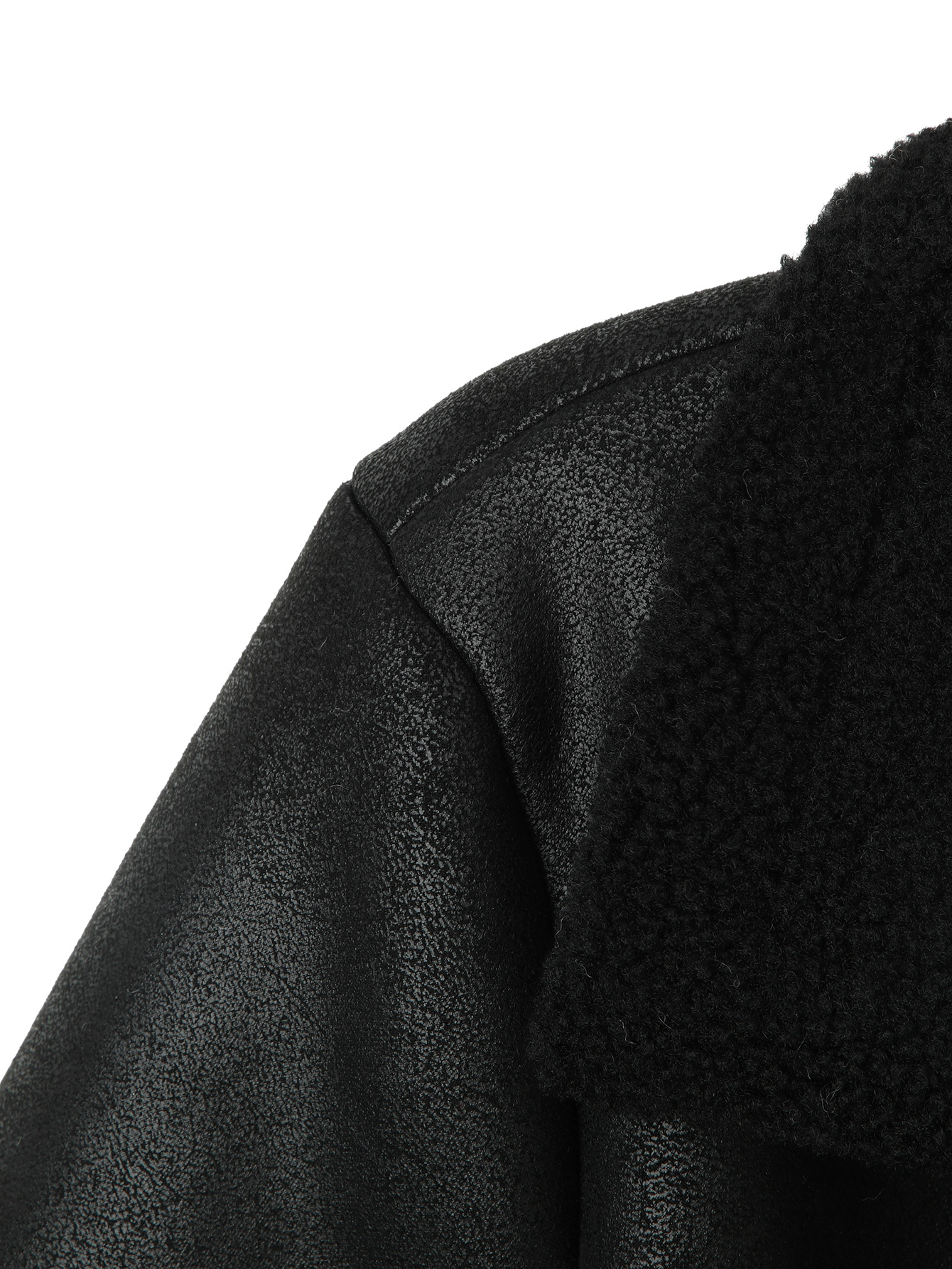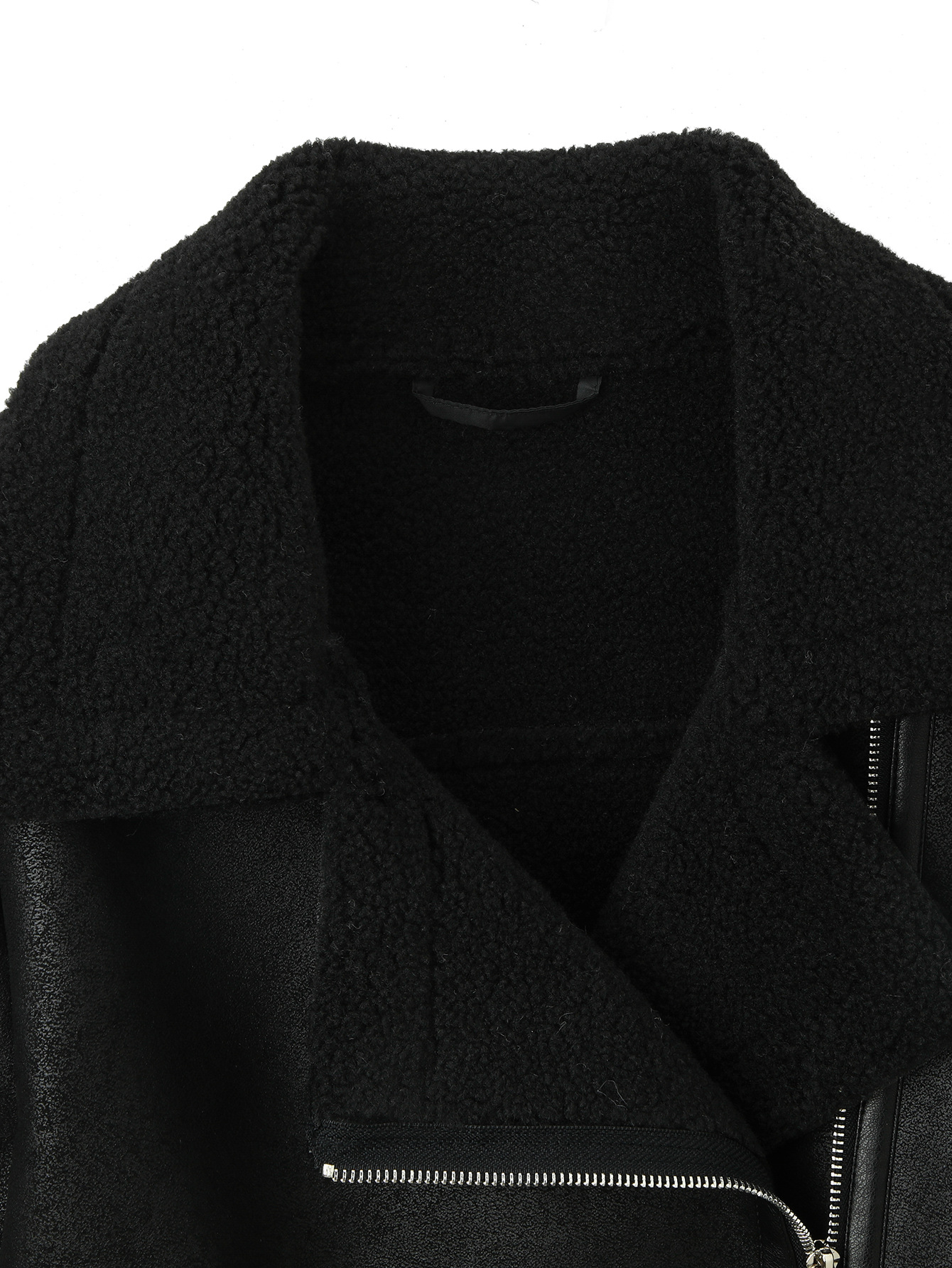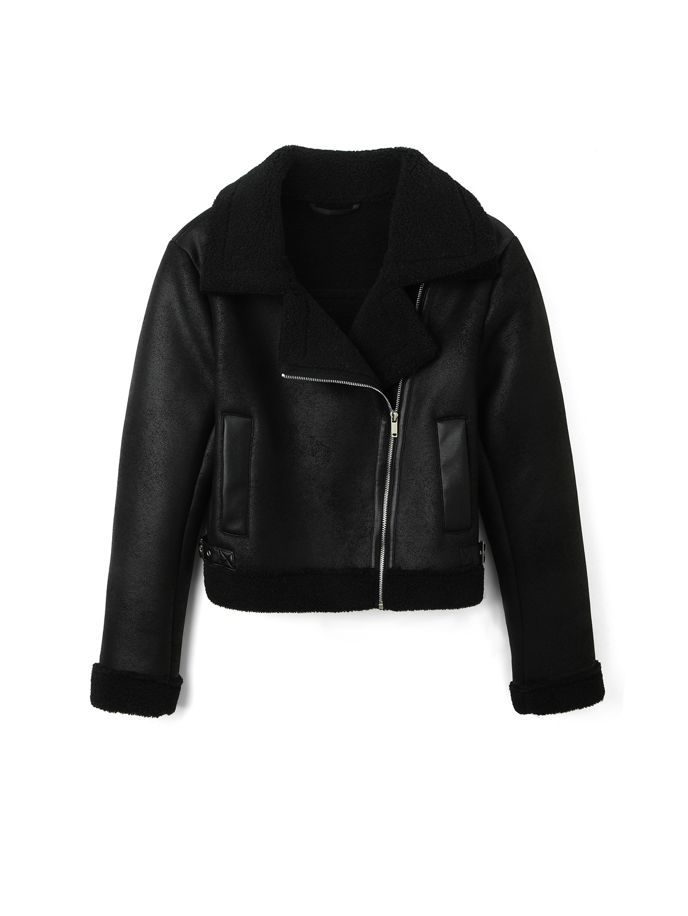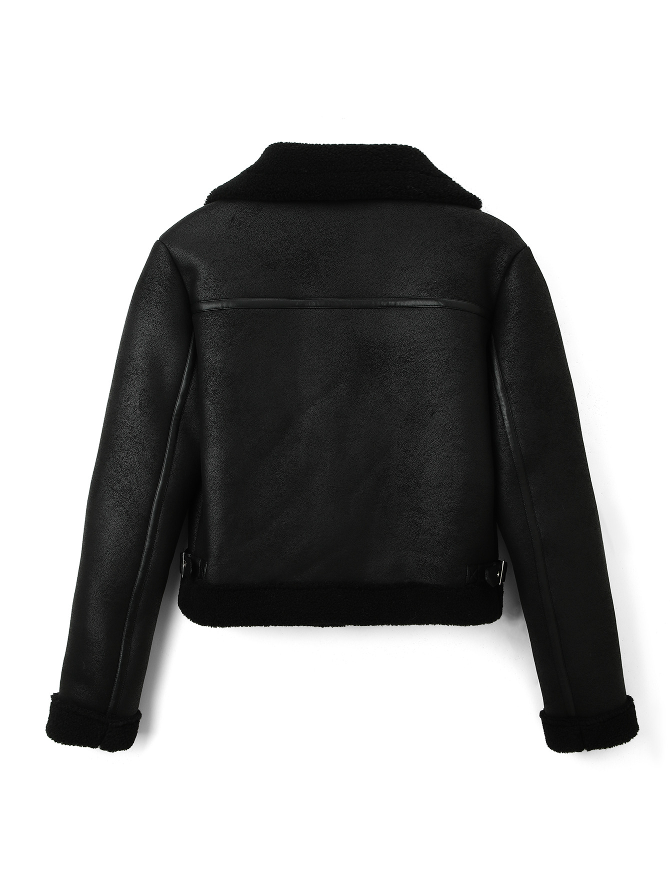 Women’s Black Cropped Shearling Biker Leather Jacket – Leather Biker Jacket quantity