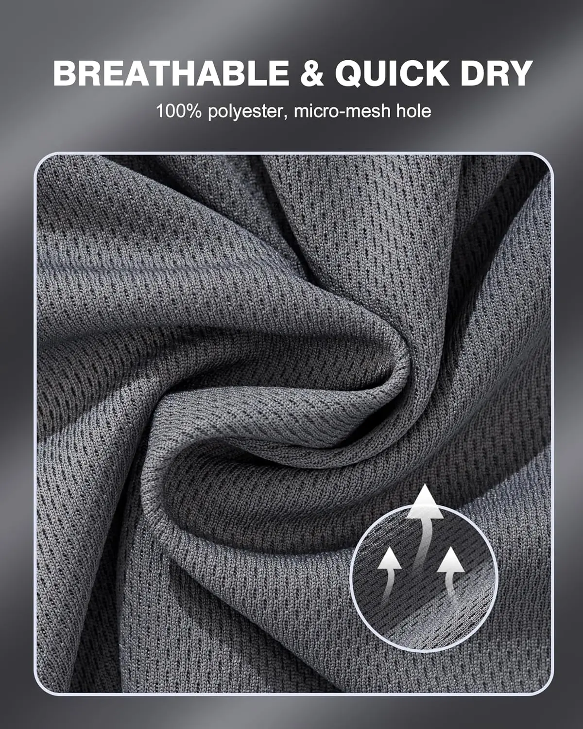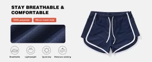 breathable, moisture-wicking, quick dry, offering long-lasting comfort
