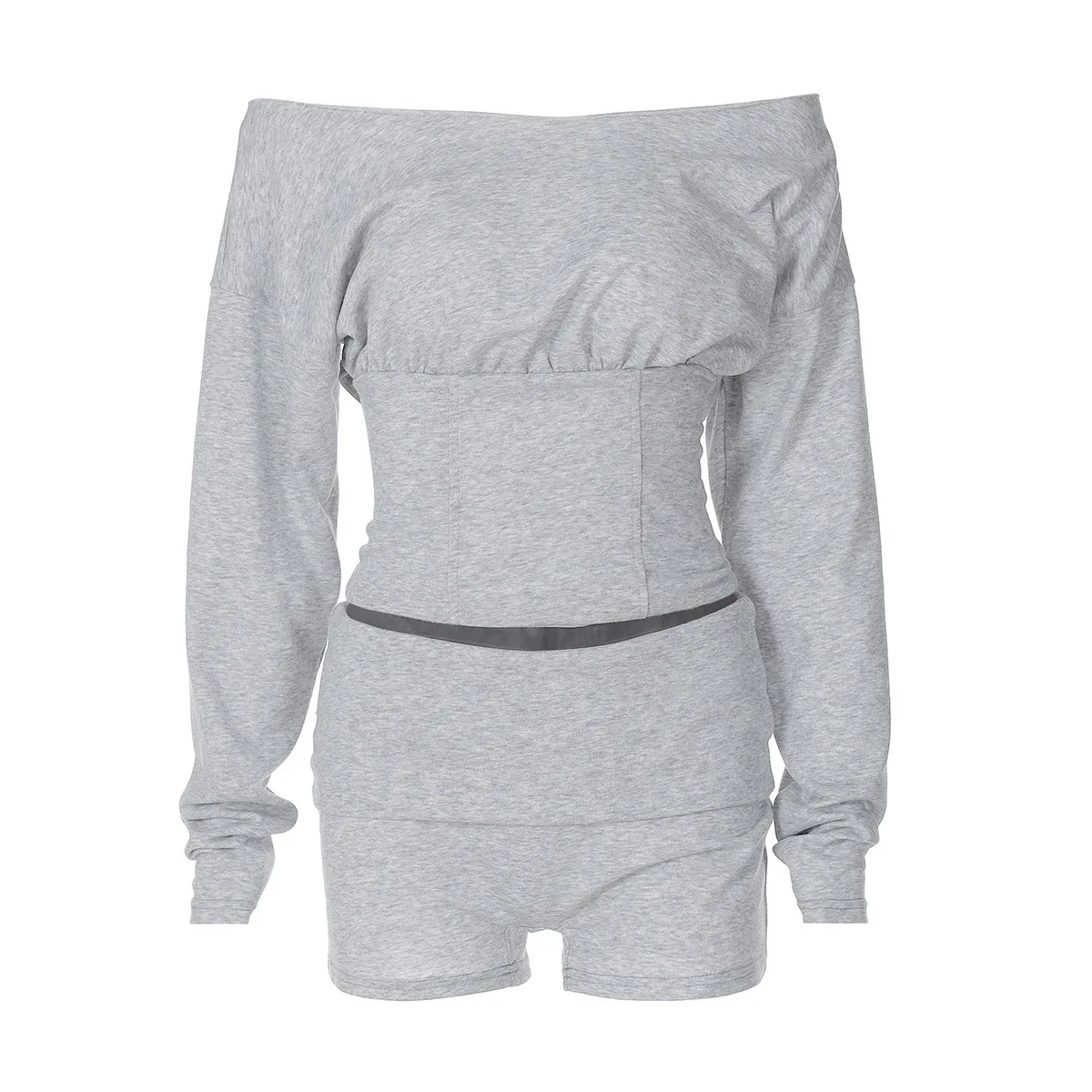 Autumn and Winter New Slash Neck Lace Up Top+Shorts Two Piece Set